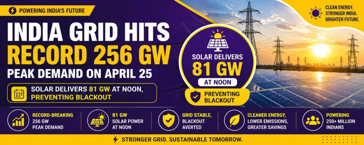 India Grid Hits All-Time Record 256 GW Peak Demand — Solar Power Saves the Day with 81 GW at Noon